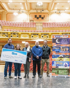 From left, Bryan Halperin, Powerhouse Theatre Producer, Sue Dagostino, MVSB Branch & Business Development Manager, Courtney Palmer, Powerhouse Theatre Associate Producer, Tate Miller, MVSB Commercial Loan Officer, and Eric Petell, MVSB Mortgage Loan Officer NMLS #696445, pose together at the Colonial Theatre – Laconia to promote the upcoming 2026 season for Powerhouse Theatre Collaborative. #MVSB – Equal Housing Lender NMLS# 466022.
